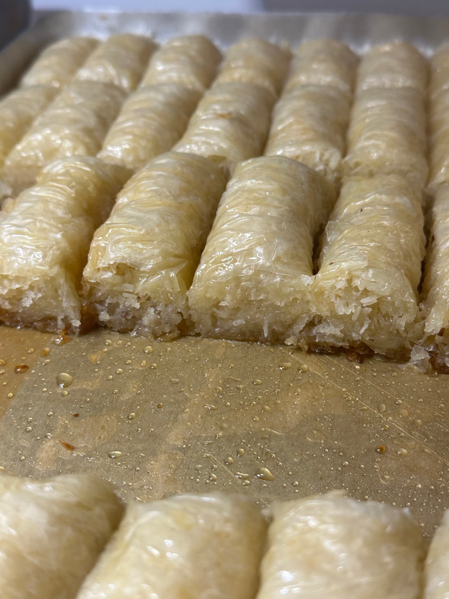 Our Turkish Coconut Baklava is a delicate layered pastry filled with sweet coconut flakes 🥥 and lightly infused with golden syrup ✨. Crispy on the outside, tender inside — a timeless Turkish delight that melts in your mouth 😍.