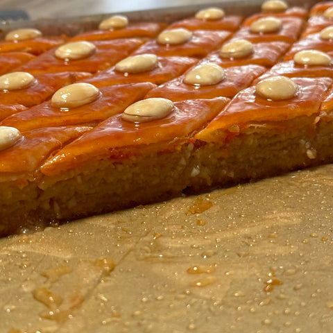 Our Azerbaijani Baklava (Paxlava) is a traditional layered pastry filled with crushed mandeln , and sweetened with golden honey syrup 🍯.